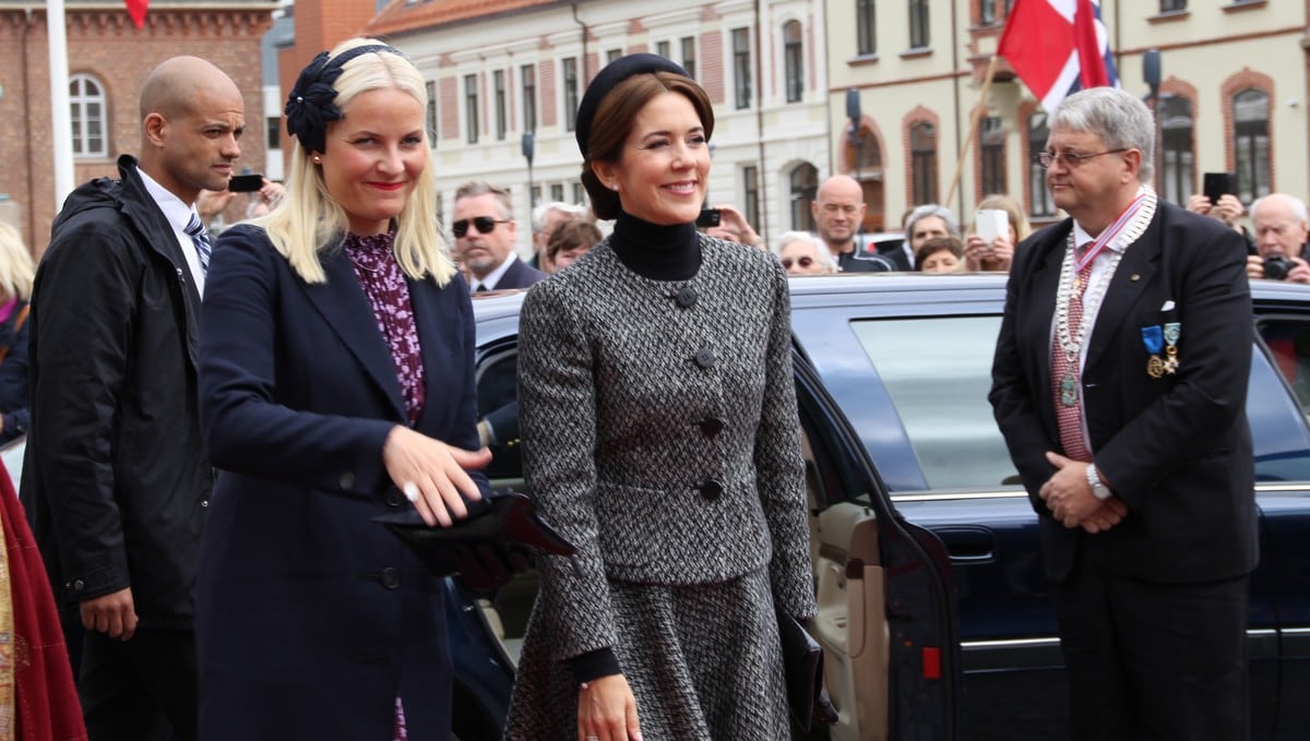 Dziś księżna Mary przybyła do Kristiansand w Norwegii, aby wraz z księżną Mette-Marit wziąć udział w obchodach 150-rocznicy wybuchy bitwy pod Helgoland. Księżna Mette-Marit odebrała Mary z lotniska Kjevik Lufthavn. Panie bardzo ucieszyły się na swój widok i serdecznie powitały.